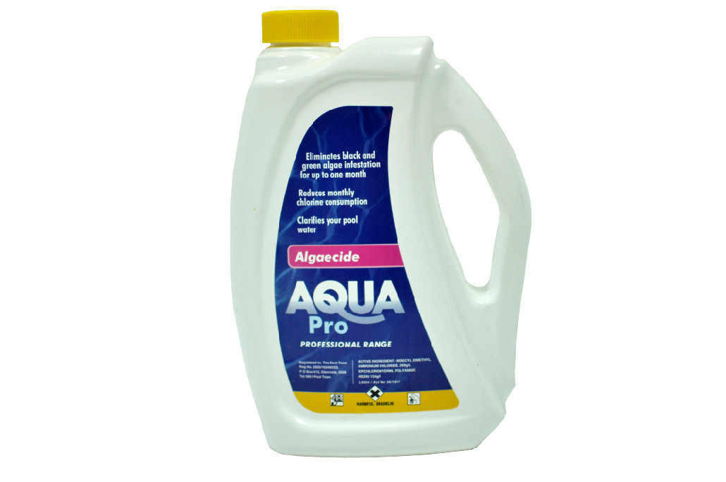 AQUAPRO ALGAECIDE / WATER CLARIFIER REDUCES YOUR MONTHLY CHLORINE CONSUMPTION AND CLEARS CLOUDY WATER ENABLING YOUR POOL CHEMICALS TO WORK MORE EFFICIENTLY.