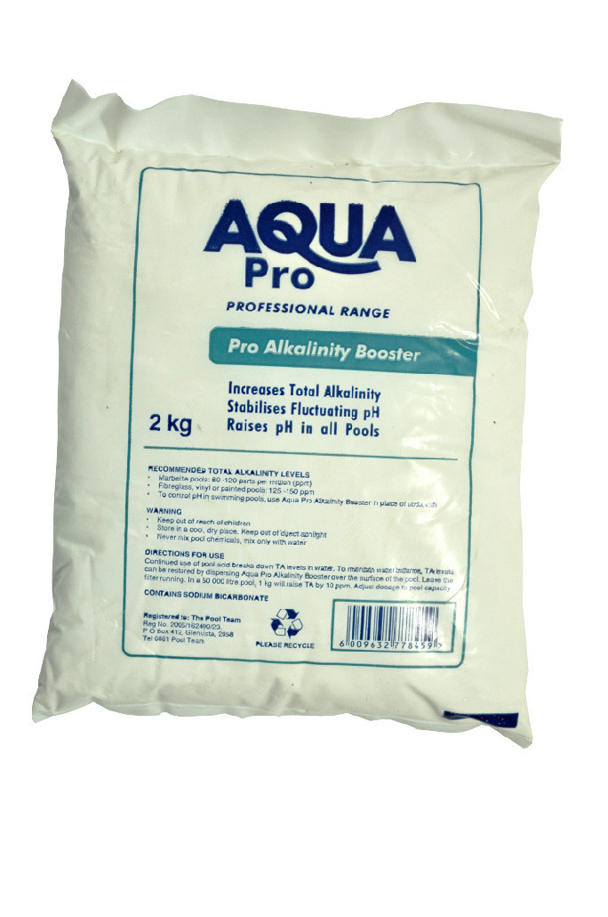 Continued use of pool acid breaks down TA levels in water. To maintain water alkalinity, TA levels can be restored by dispensing AQUA PRO Alkalinity Booster over the surface of the pool Leave the filter running. In a 50 000 litre pool, 1kg will raise TA by 10ppm. Adjust dosage to pool capacity.